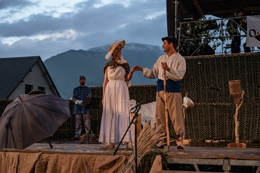 Autour des 80 acteurs, chanteurs, danseurs et musiciens, venez vivre 2 heures de spectacle en plein air, enjoué et haut en couleurs. Pour les non initiés au béarnais, un livret sera proposé, avec l’ensemble des textes et chants traduits, qui vous permettra de suivre l’intégralité du spectacle.